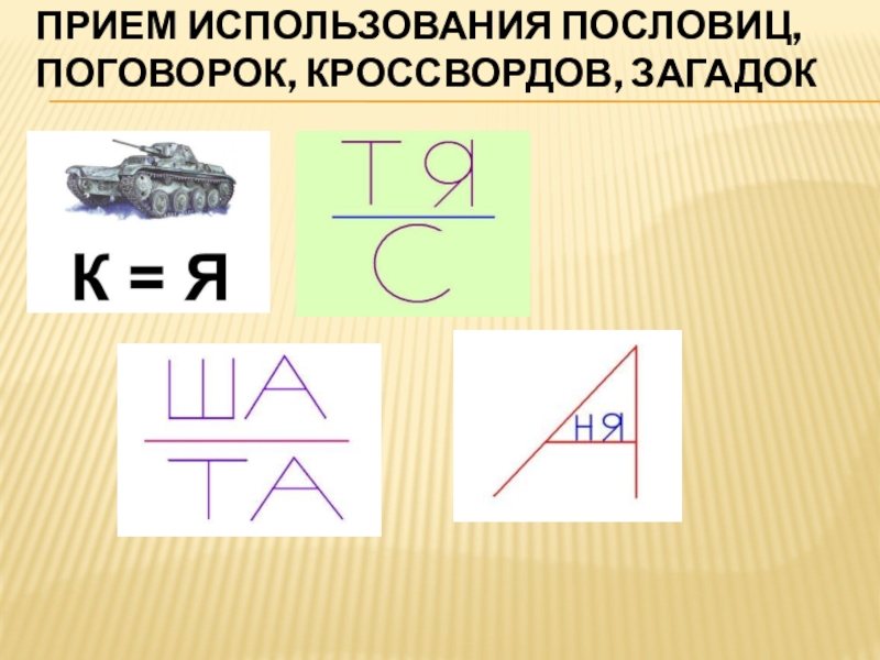 Слайд 16Прием использования пословиц, поговорок, кроссвордов, загадок