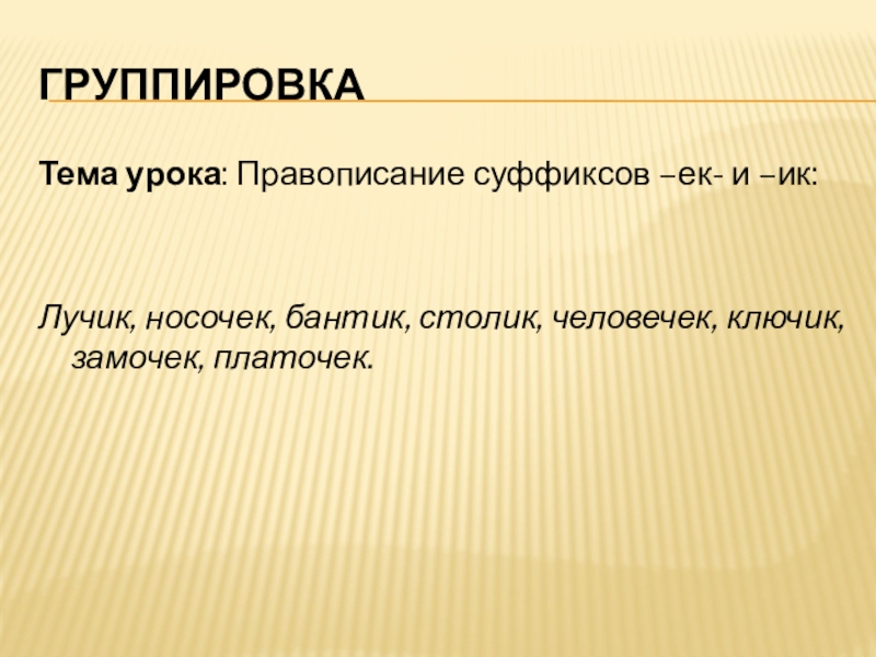 Тема урока: Правописание суффиксов –ек- и –ик: