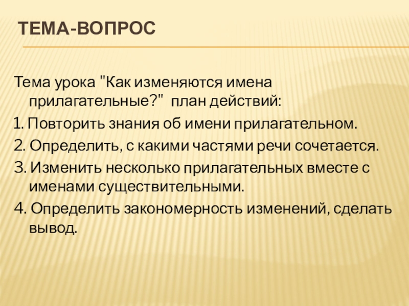 Тема урока "Как изменяются имена прилагательные?" план действий: