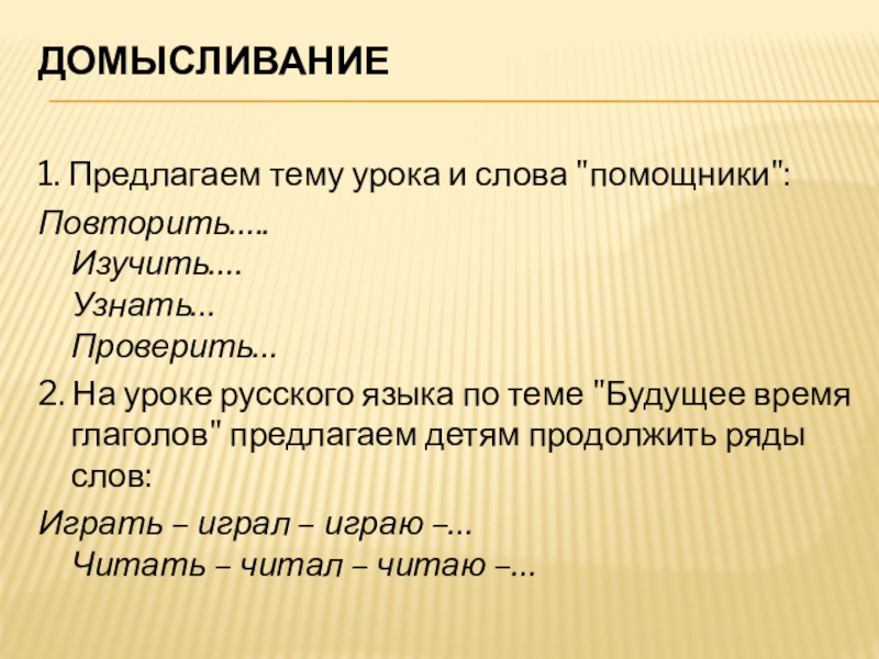 по теме "Будущее время глаголов" предлагаем детям продолжить ряды слов: