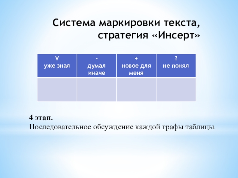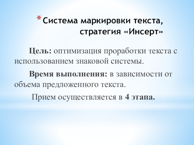 Слайд 4Система маркировки текста, стратегия «Инсерт»