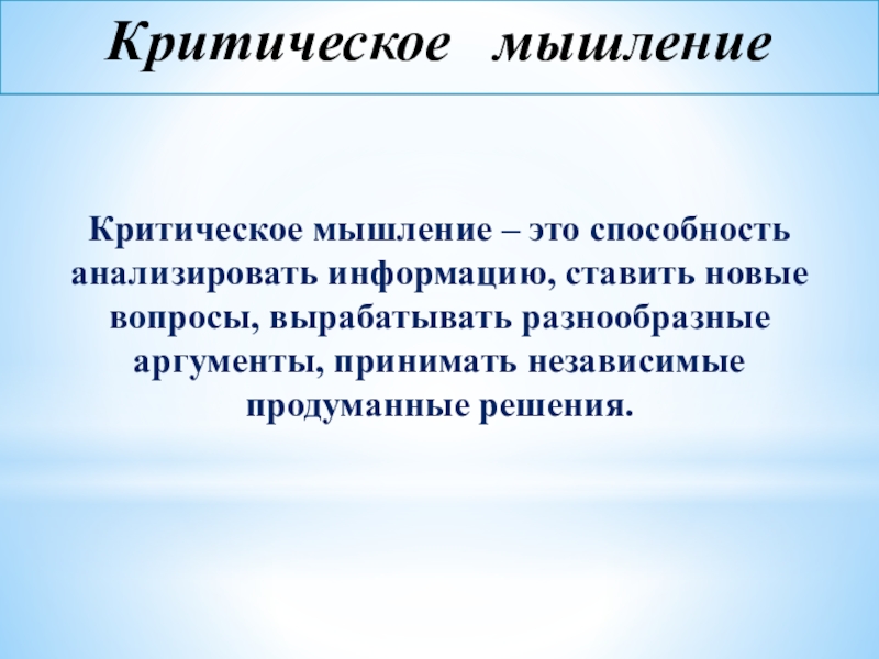 Слайд 2Критическое мышление