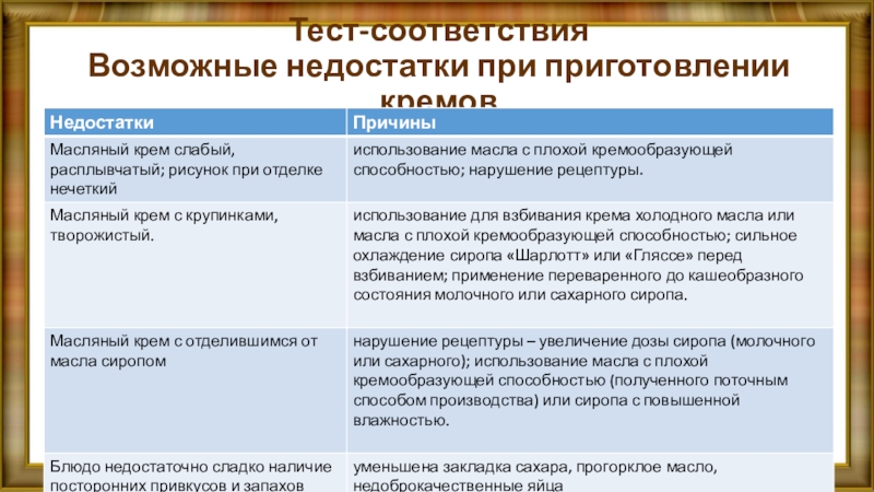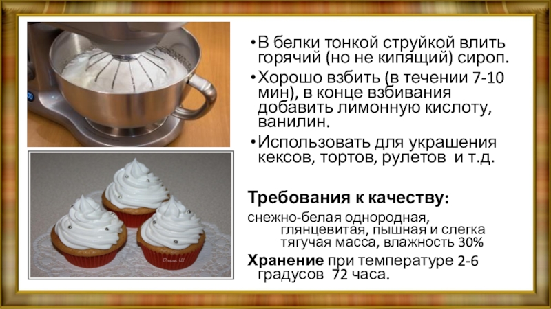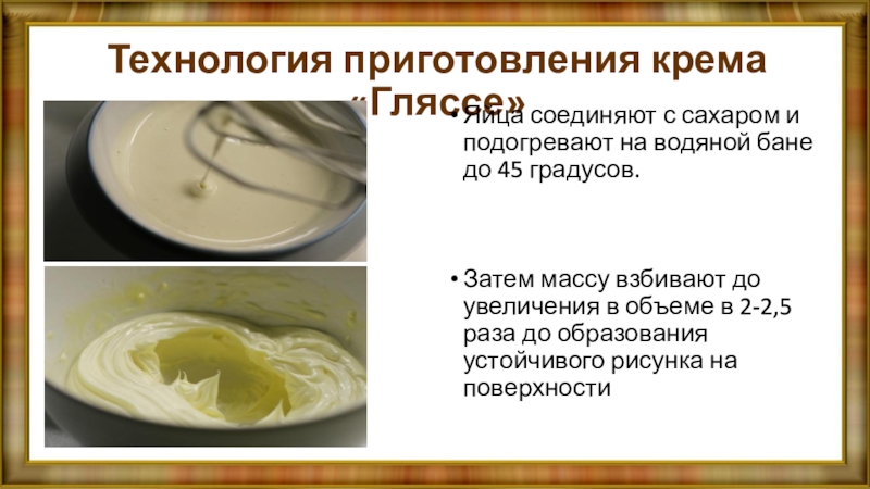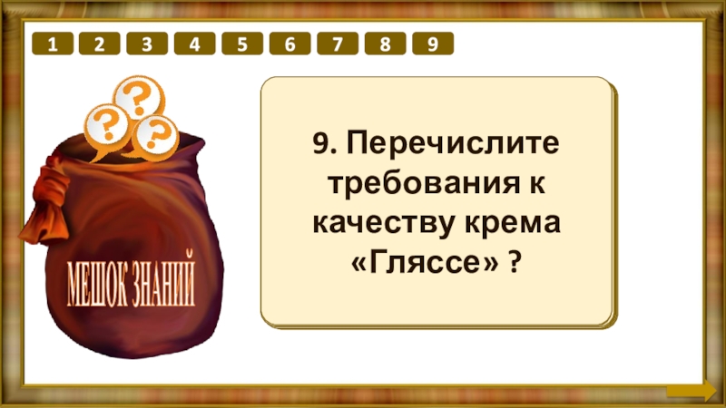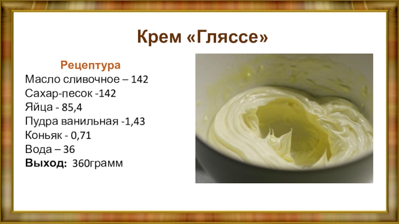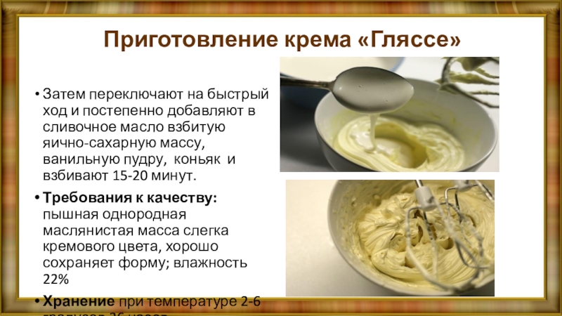 9. Перечислите требования к качеству крема «Гляссе» ?