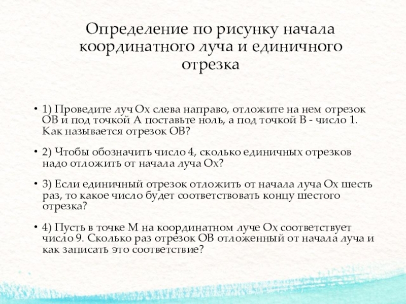 Слайд 8Определение по рисунку начала координатного луча и единичного отрезка
