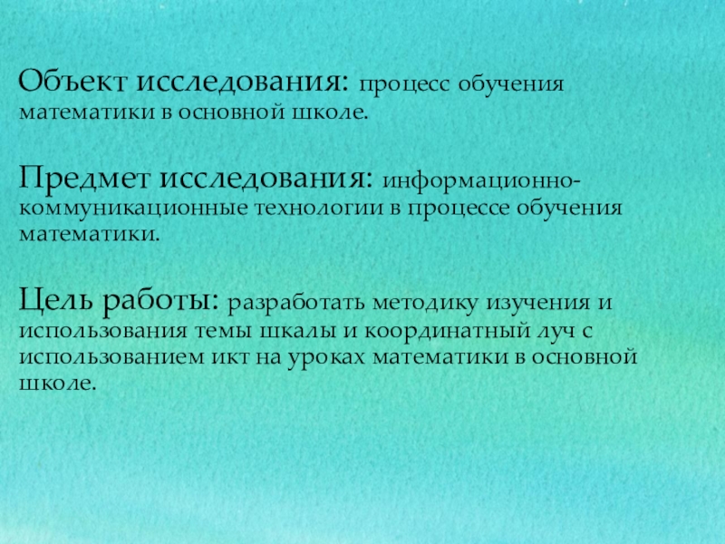Слайд 2Объект исследования: процесс обучения математики в основной школе.