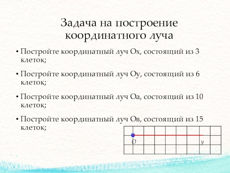 Постройте координатный луч Оа, состоящий из 10 клеток;