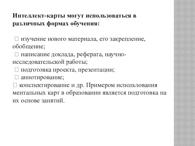 Слайд 6Интеллект-карты могут использоваться в различных формах обучения: