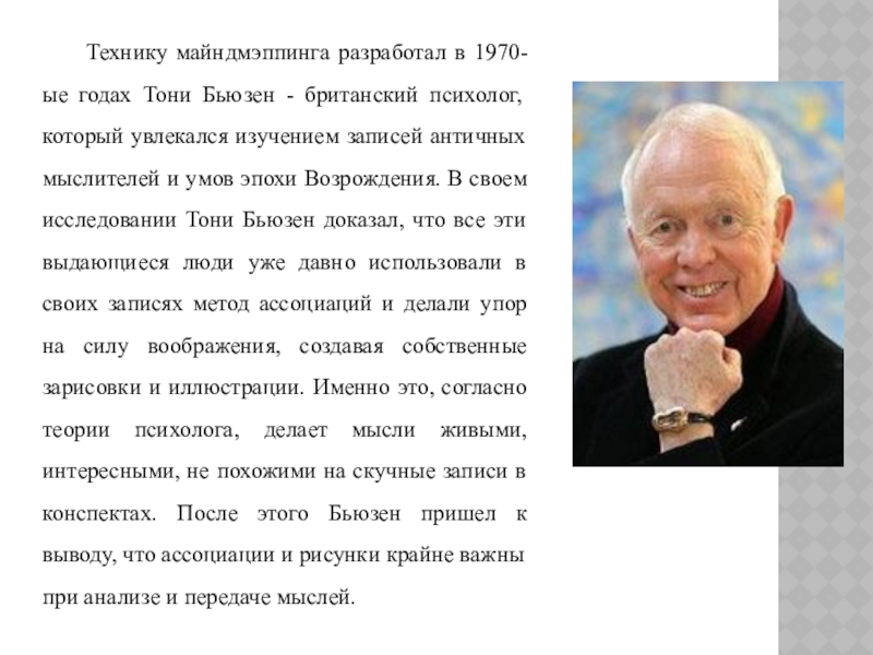 Слайд 3 Технику майндмэппинга разработал в 1970-ые годах Тони Бьюзен - британский психолог,
