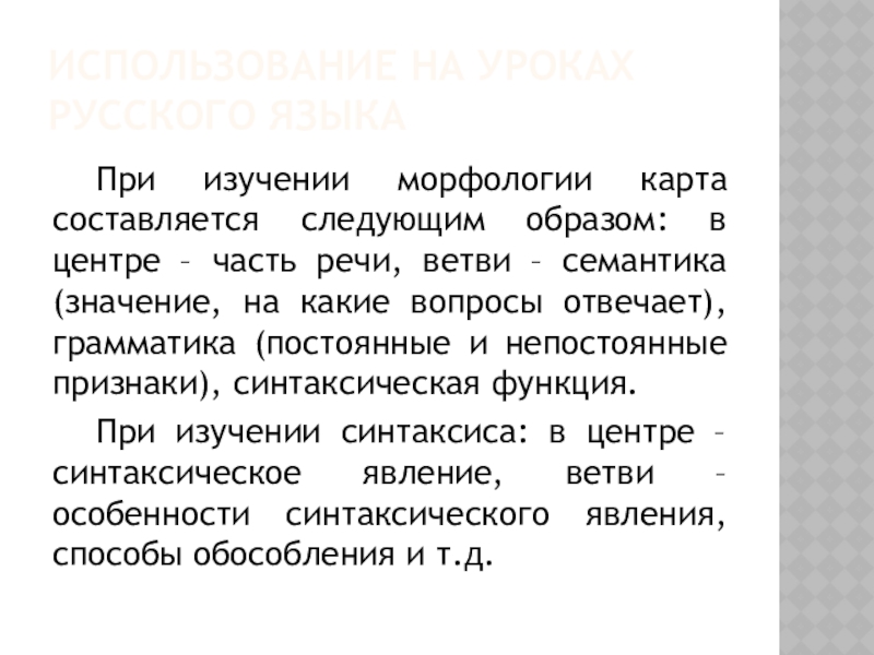 При изучении синтаксиса: в центре – синтаксическое явление, ветви – особенности синтаксического явления, способы обособления и т.д.