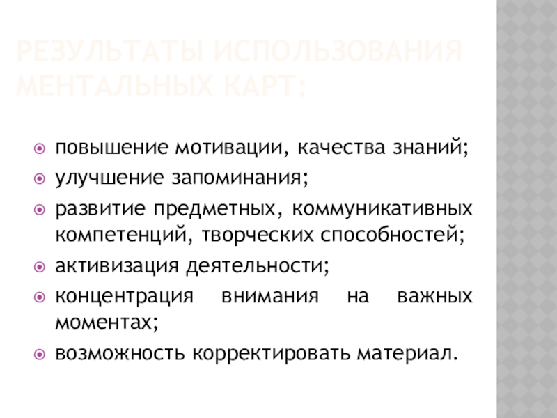 Слайд 12РЕЗУЛЬТАТЫ ИСПОЛЬЗОВАНИЯ МЕНТАЛЬНЫХ КАРТ: