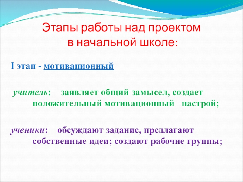 учитель: заявляет общий замысел, создает положительный мотивационный настрой;