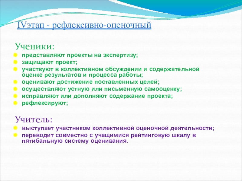 переводит совместно с учащимися рейтинговую шкалу в пятибальную систему оценивания.