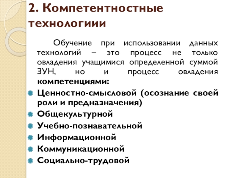 процесс не только овладения учащимися определенной суммой ЗУН, но и процесс овладения компетенциями: