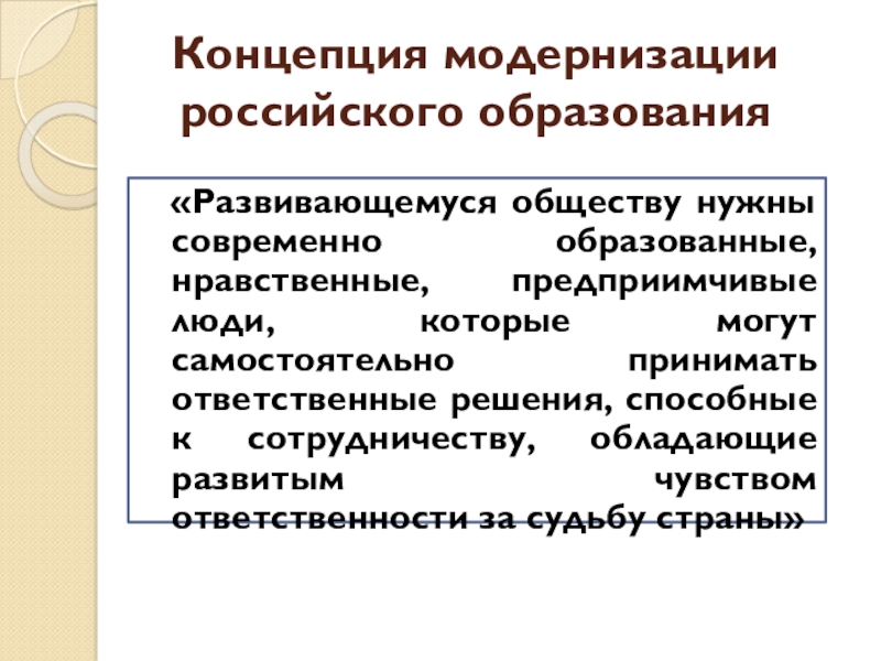 люди, которые могут самостоятельно принимать ответственные решения, способные к сотрудничеству, обладающие развитым чувством ответственности за судьбу страны»