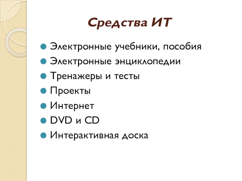 видео опыты, видеокурсы, слайды, презентации, познавательные игры, электронные пособия, словари, образовательные сайты, упражнения, тренажеры