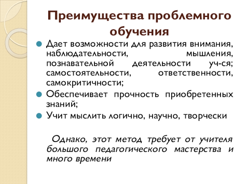 Однако, этот метод требует от учителя большого педагогического мастерства и много времени