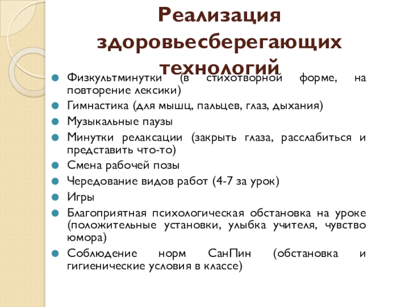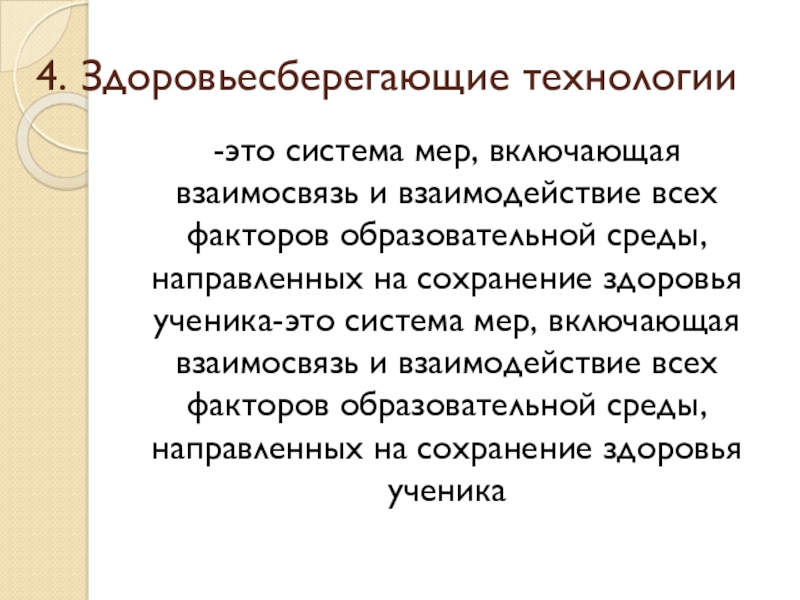образовательной среды, направленных на сохранение здоровья ученика-это система мер, включающая взаимосвязь и взаимодействие всех факторов образовательной среды, направленных на сохранение здоровья ученика