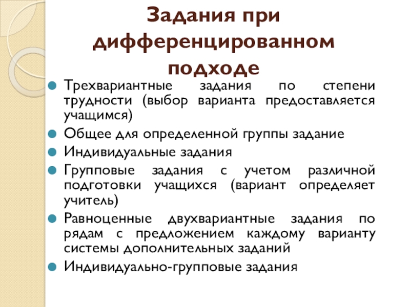 Групповые задания с учетом различной подготовки учащихся (вариант определяет учитель)