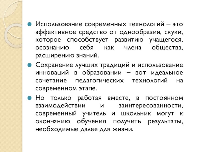 Слайд 37Использование современных технологий – это эффективное средство от однообразия, скуки, которое