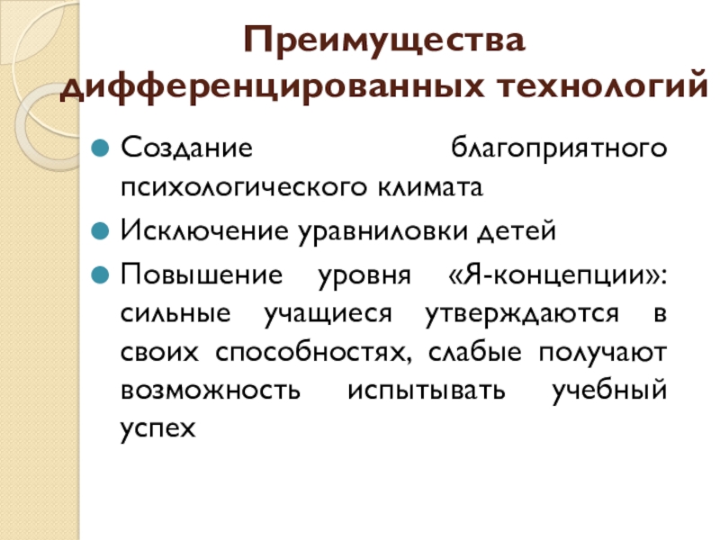 учащиеся утверждаются в своих способностях, слабые получают возможность испытывать учебный успех