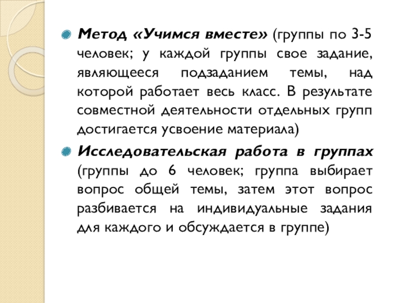 Слайд 36Метод «Учимся вместе» (группы по 3-5 человек; у каждой группы свое