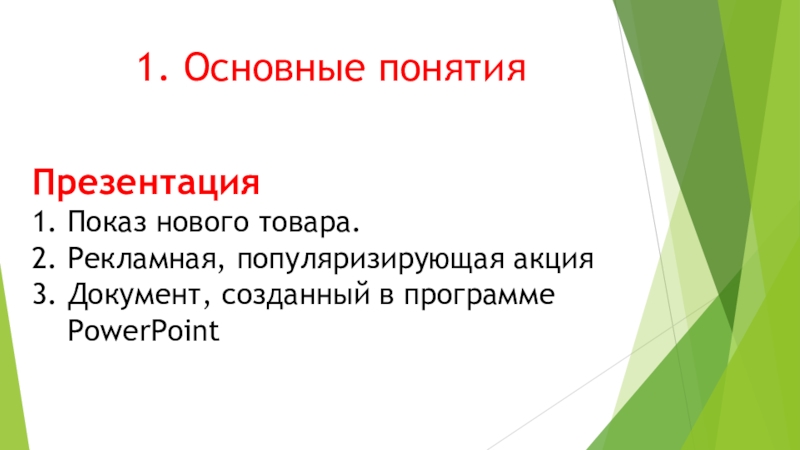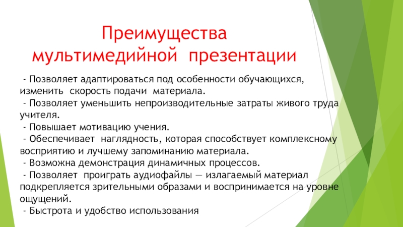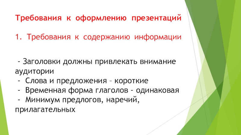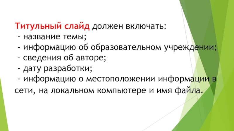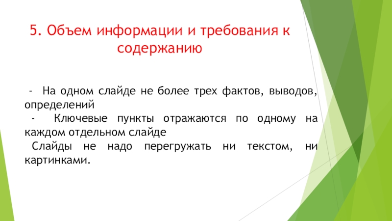 - Ключевые пункты отражаются по одному на каждом отдельном слайде