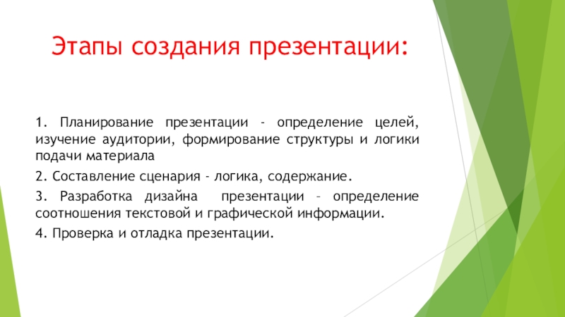 1. Планирование презентации - определение целей, изучение аудитории, формирование
