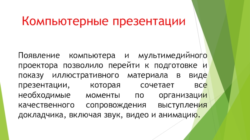 и показу иллюстративного материала в виде презентации, которая сочетает все необходимые моменты по организации качественного сопровождения выступления докладчика, включая звук, видео и анимацию.