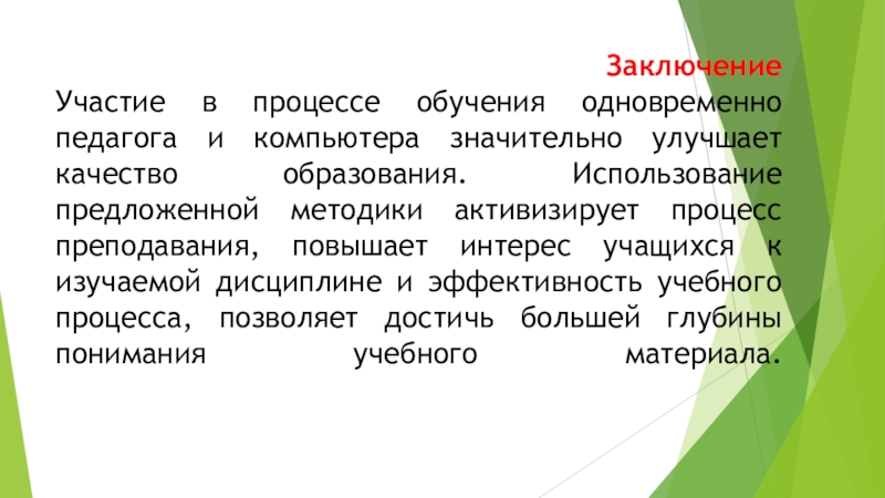 Участие в процессе обучения одновременно педагога и компьютера значительно улучшает