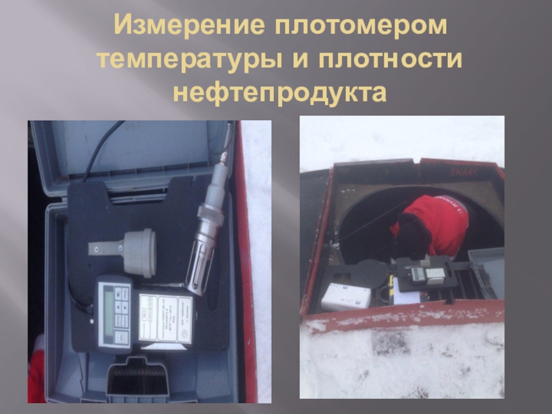 Слайд 5Измерение плотомером температуры и плотности нефтепродукта