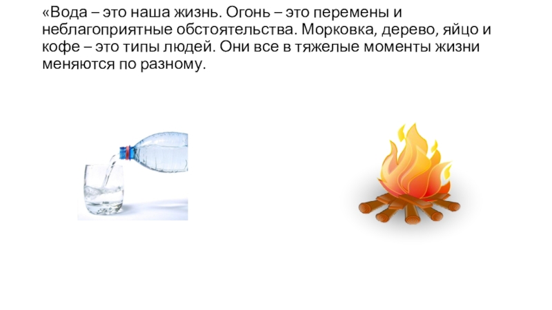 Слайд 5«Вода – это наша жизнь. Огонь – это перемены и неблагоприятные