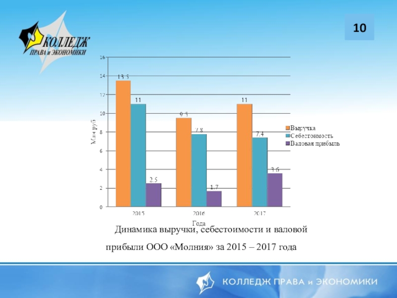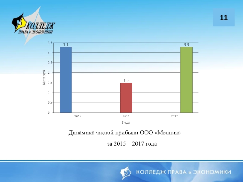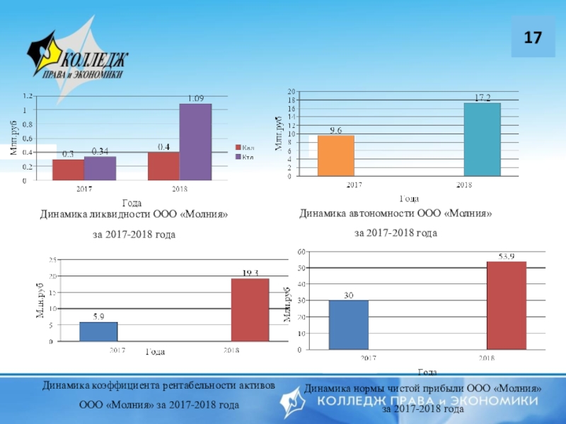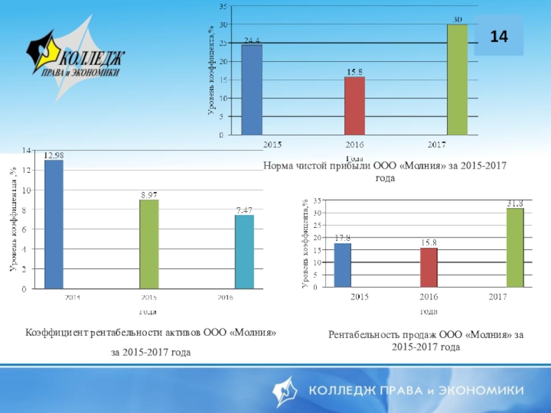 Рентабельность продаж ООО «Молния» за 2015-2017 года