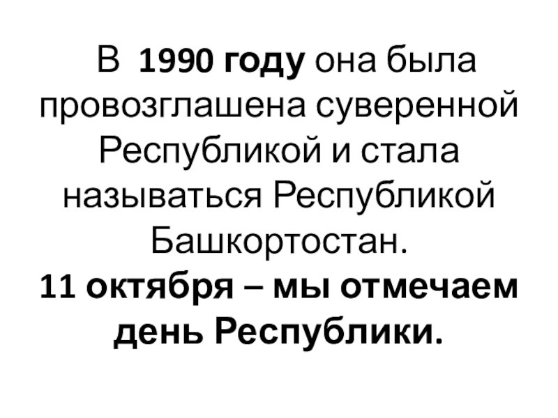 называться Республикой Башкортостан. 11 октября – мы отмечаем день Республики.