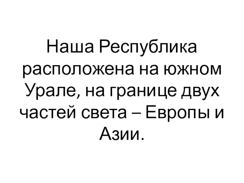 Слайд 11Наша Республика расположена на южном Урале, на границе двух частей света