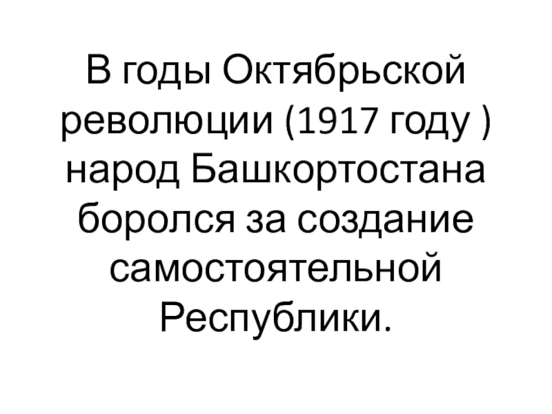 В годы Октябрьской революции (1917 году ) народ Башкортостана боролся за создание самостоятельной Республики.