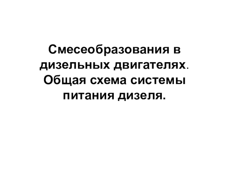 Слайд 1Смесеобразования в дизельных двигателях. Общая схема системы питания дизеля.