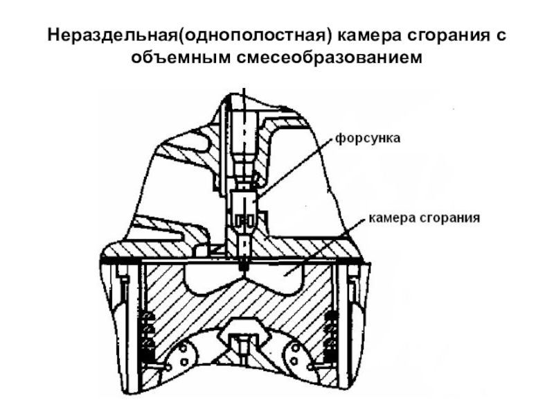 Слайд 8Нераздельная(однополостная) камера сгорания с объемным смесеобразованием