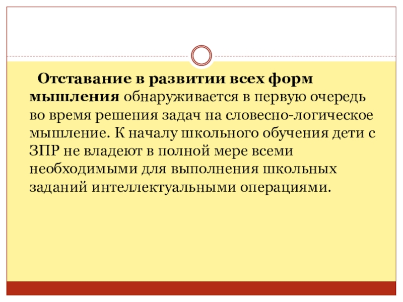 Слайд 15 Отставание в развитии всех форм мышления обнаруживается в первую очередь во