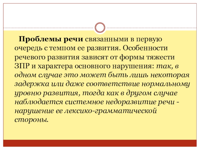 Слайд 13 Проблемы речи связанными в первую очередь с темпом ее развития. Особенности