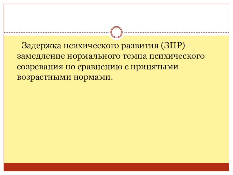Слайд 2 Задержка психического развития (ЗПР) - замедление нормального темпа психического созревания по