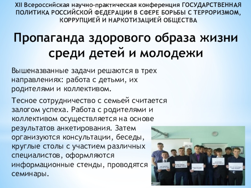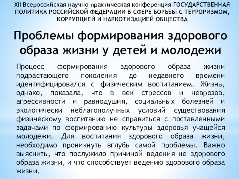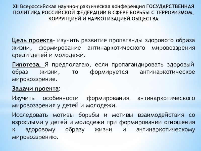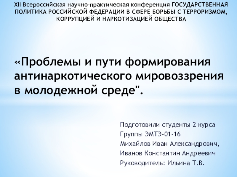 XII Всероссийская научно-практическая конференция ГОСУДАРСТВЕННАЯ ПОЛИТИКА РОССИЙСКОЙ ФЕДЕРАЦИИ В СФЕРЕ БОРЬБЫ С ТЕРРОРИЗМОМ, КОРРУПЦИЕЙ И НАРКОТИЗАЦИЕЙ ОБЩЕСТВА
