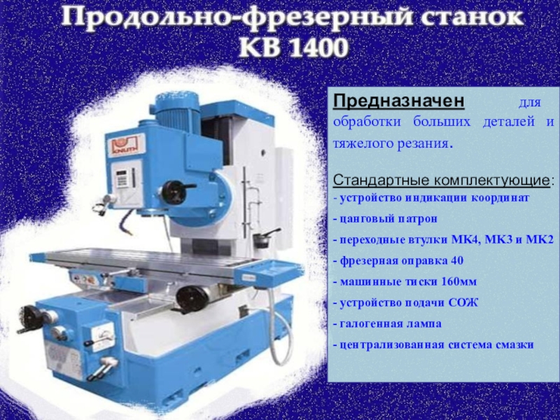 Обеспечивает фрезерование плоскостей, пазов, выступов, криволинейных контуров, сверление, зенкерование, развертывание и растачивание отверстий, нарезание резьбы метчиком.