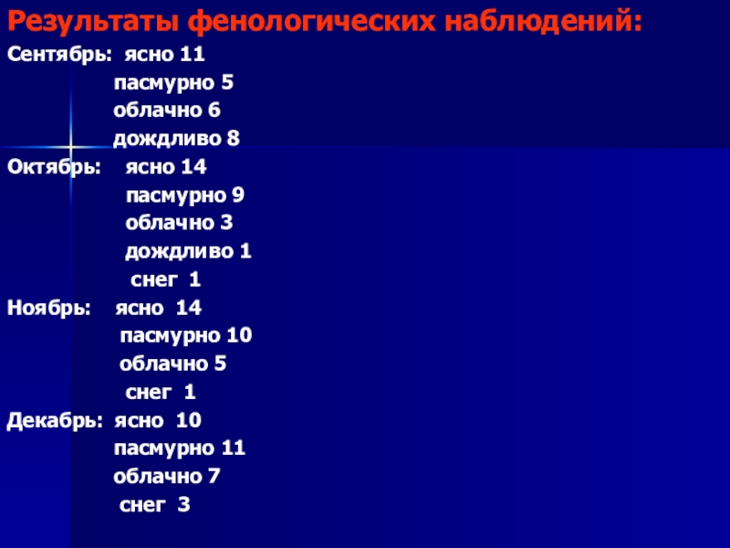 Слайд 15Результаты фенологических наблюдений: