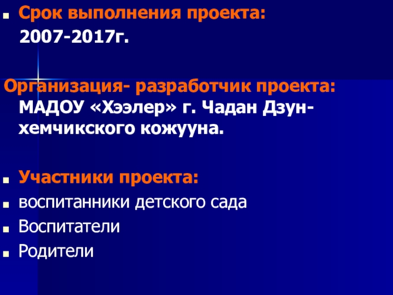 Слайд 6Срок выполнения проекта: