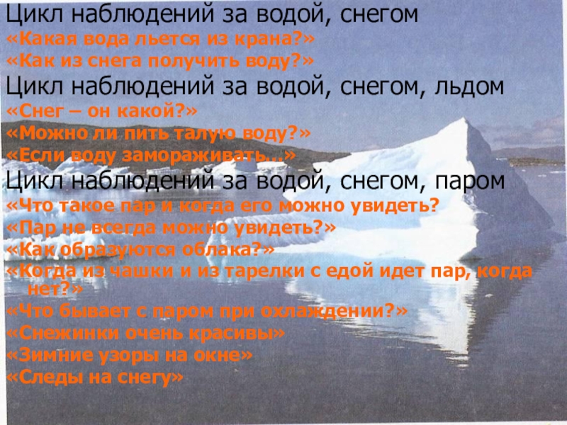 Цикл наблюдений за водой, снегом, паром