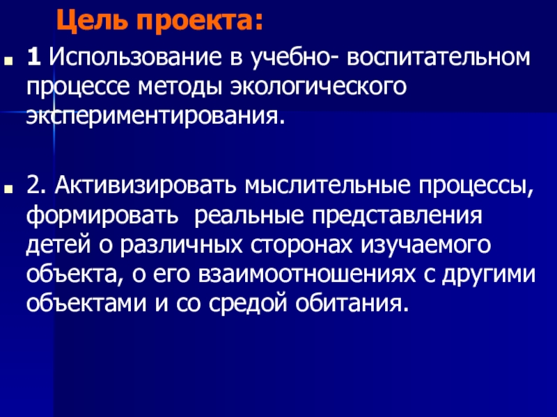 2. Активизировать мыслительные процессы, формировать реальные представления детей о различных сторонах изучаемого объекта, о его взаимоотношениях с другими объектами и со средой обитания.