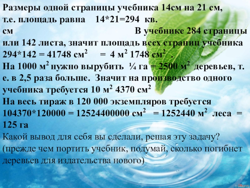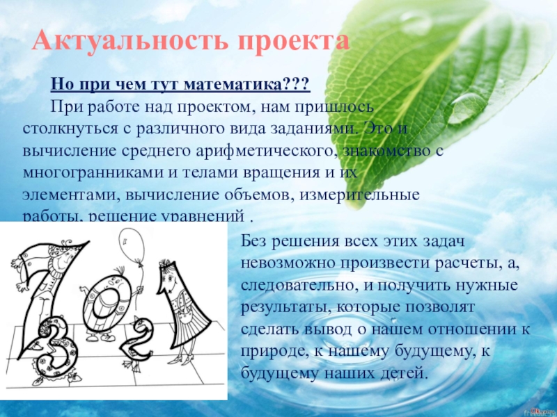 Без решения всех этих задач невозможно произвести расчеты, а, следовательно, и получить нужные результаты, которые позволят сделать вывод о нашем отношении к природе, к нашему будущему, к будущему наших детей.
