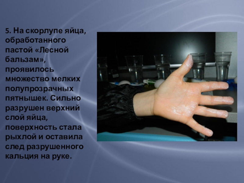 5. На скорлупе яйца, обработанного пастой «Лесной бальзам», проявилось множество мелких
