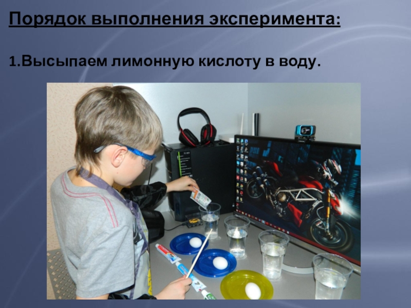 раствор лимонной кислоты. Время выдержки яиц в растворе кислоты 12 часов.