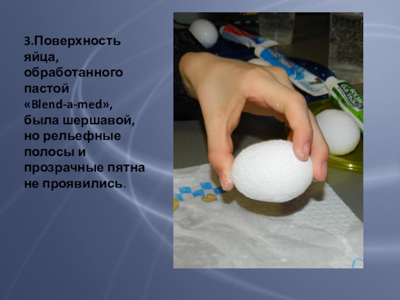 3.Поверхность яйца, обработанного пастой «Blend-a-med», была шершавой, но рельефные полосы и